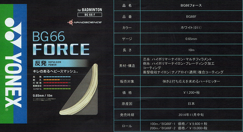 Re: YONEX新線上市 BG66 FORCE