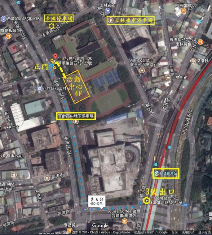 【地點:) 百齡高中(鄰近士林夜市/捷運劍潭站),進校門右轉活動中心4樓(電梯直上)。