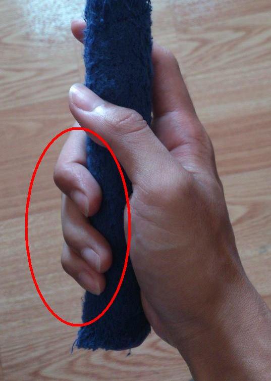 但實際上小弟練球或實際操作時 遠球和殺球發力往往手腕手肘甩下來時食指有時會離開球柄 以致球拍往下壓迫的拇指...(多次之後還滿痛的...