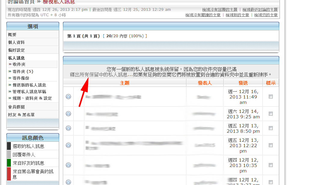 您有一個新的私人訊息被系統保留,因為您的收件夾容量已滿