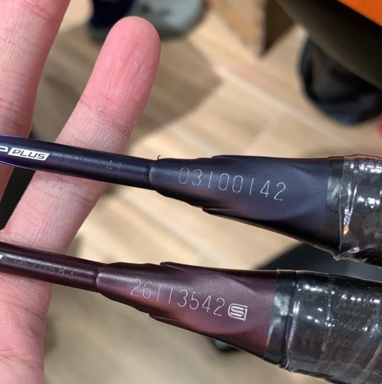 這週一在北市某個學校場地打球時,有個先生突然手上拿了三把球拍到處問球場上的球友要不要試打,拿到我面前時我看了一下,ARC11、NS9900 LTD綠色還有VT ZF,好奇之下借來看了一下,不得了了,每隻剛號都是JP版的,一問價格.................1000................